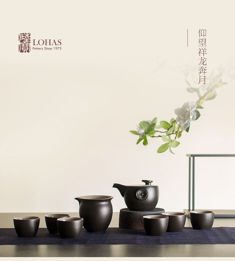 LOHAS/陆宝禅风黑定窑龙纹茶具8件套DYLW001BK