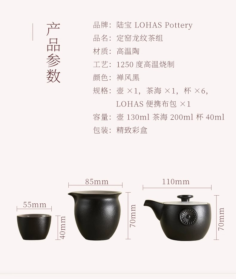 商品名称:LOHAS/陆宝禅风黑定窑龙纹茶具8件套DYLW001BK