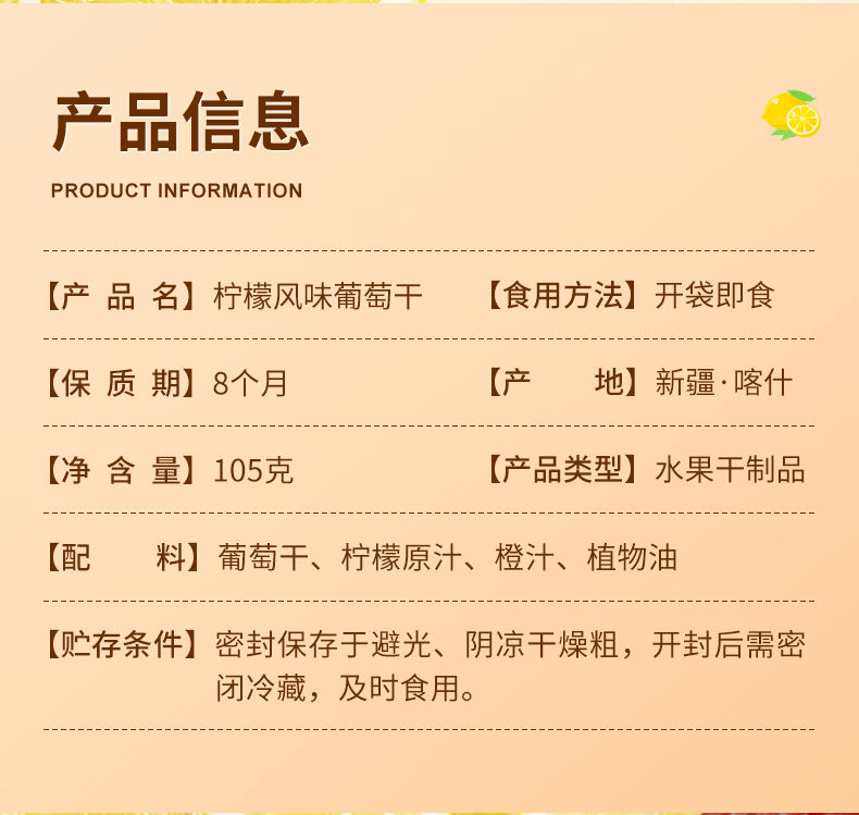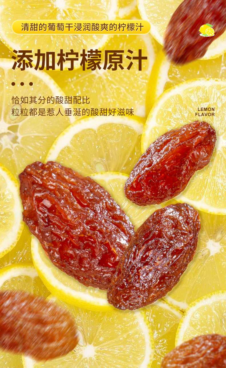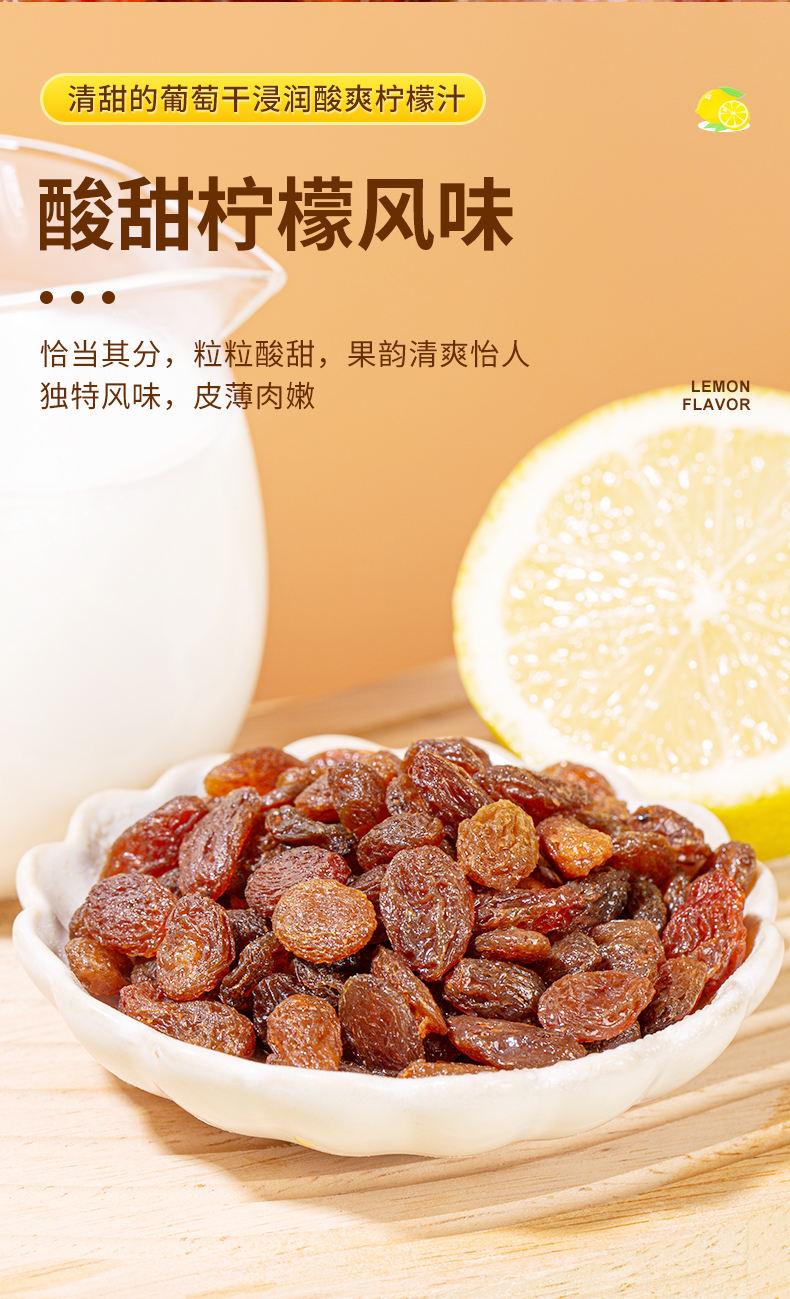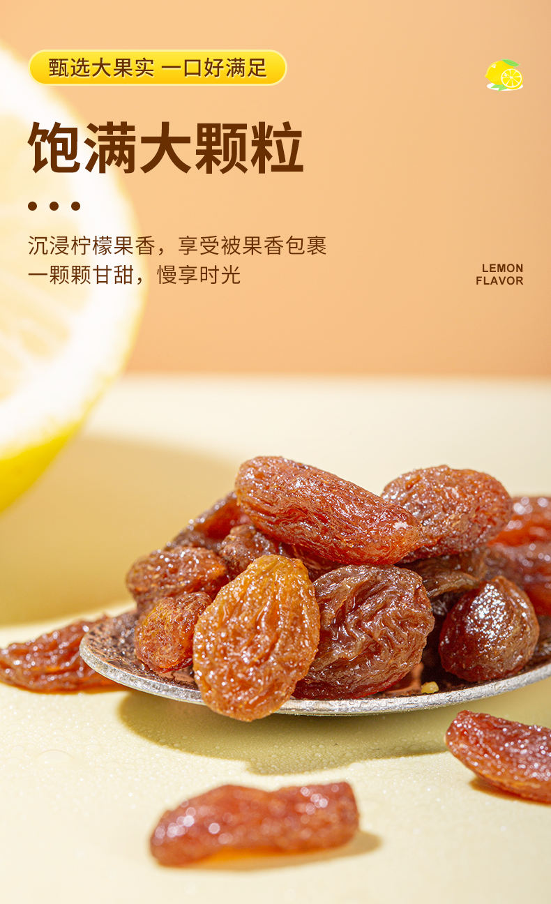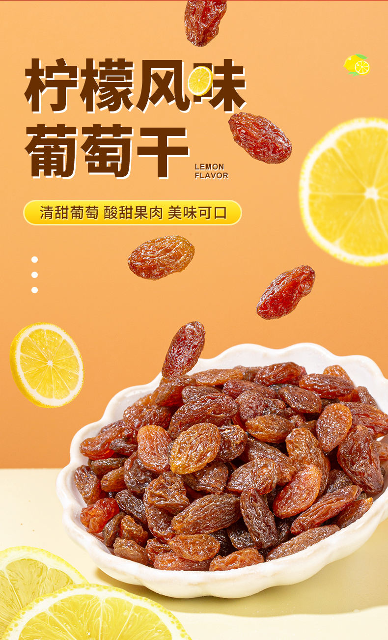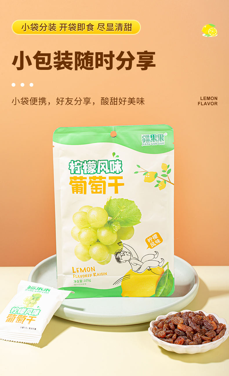 商品名称:疆果果柠檬风味葡萄干105g*3袋
