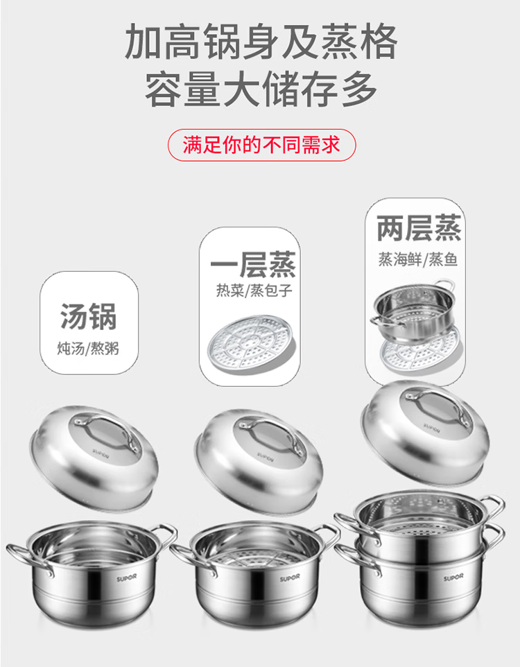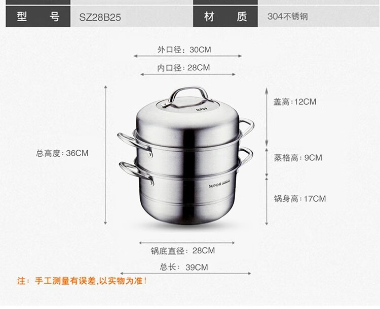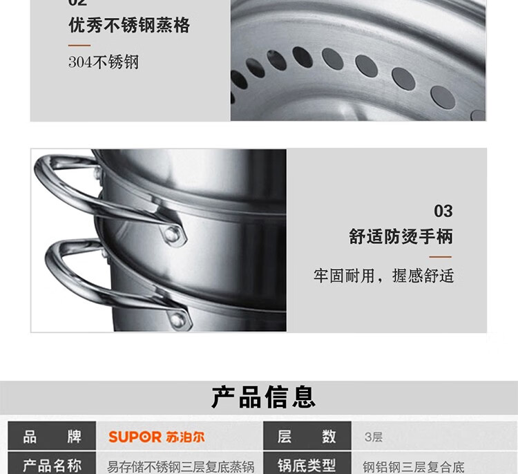 商品名称:SUPOR/苏泊尔28cm不锈钢三层复底蒸锅SZ28B25