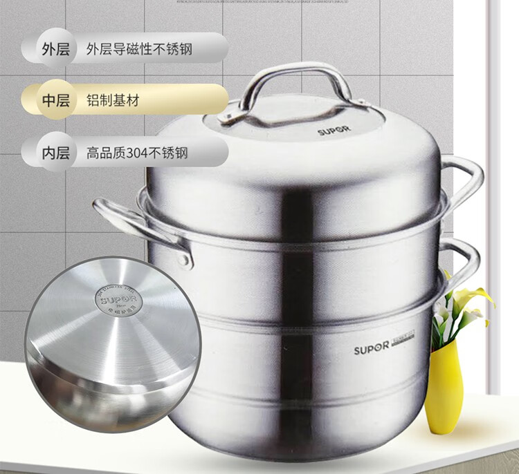 SUPOR/苏泊尔28cm不锈钢三层复底蒸锅SZ28B25