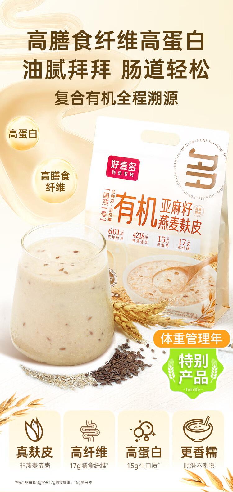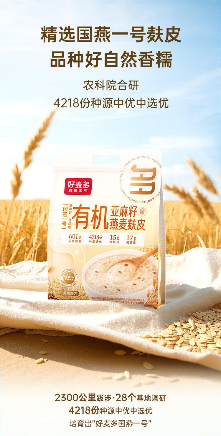 商品名称:好麦多有机亚麻籽燕麦麸皮420g*2袋