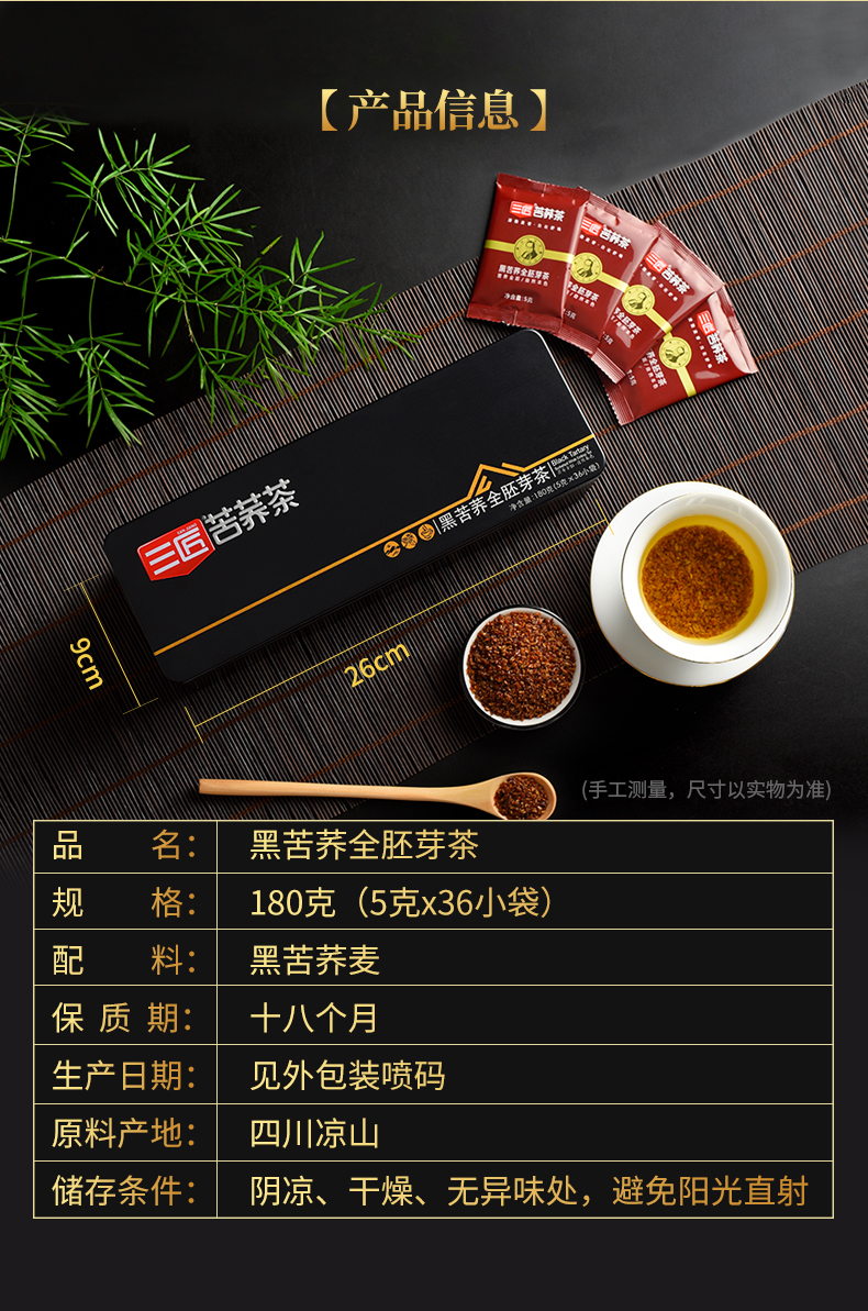 商品名称:三匠黑苦荞全胚芽茶铁盒180g