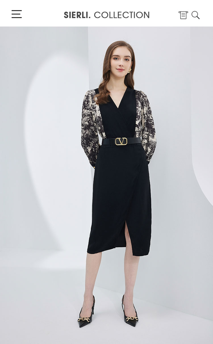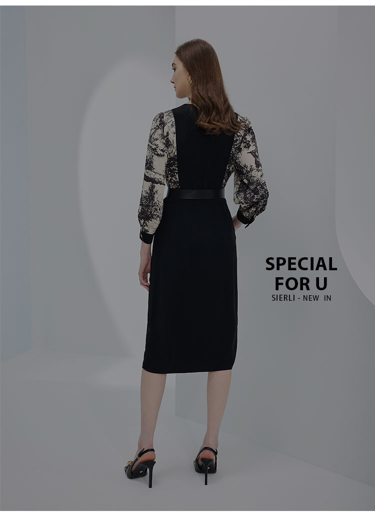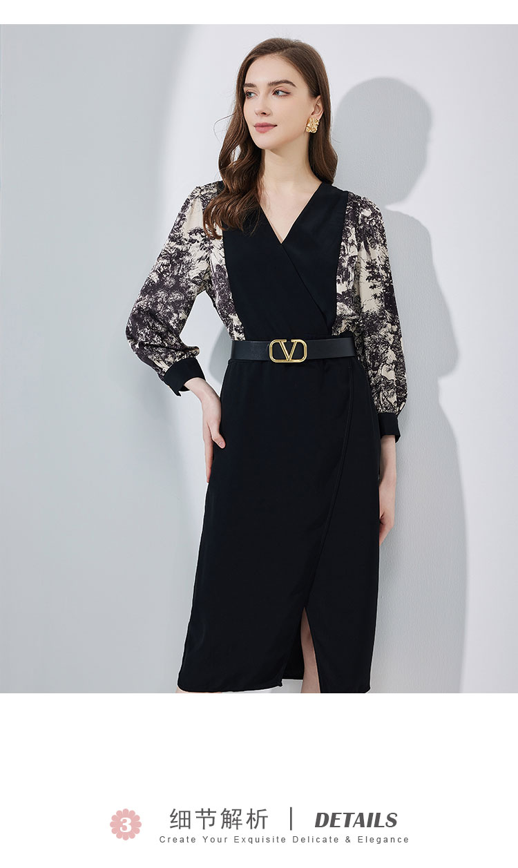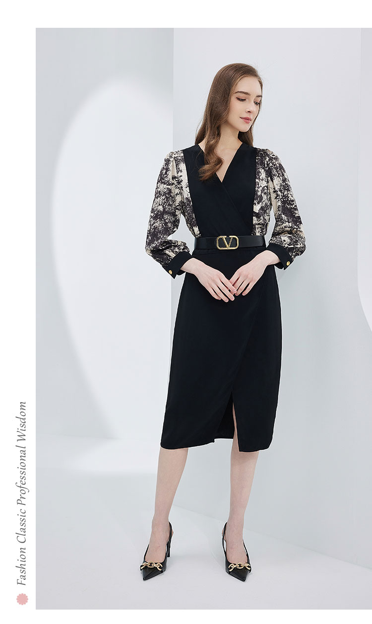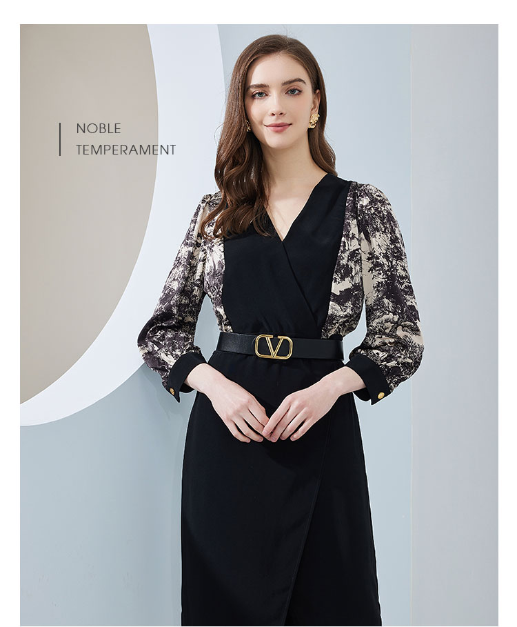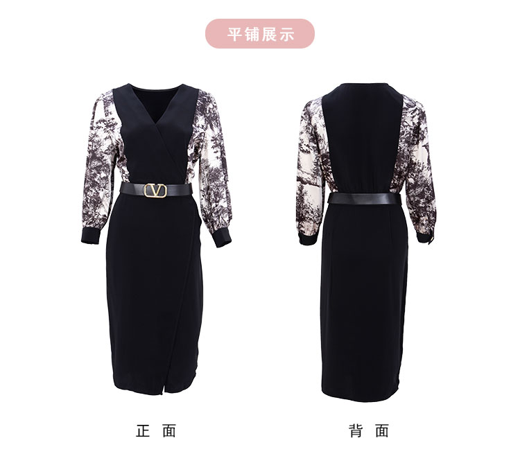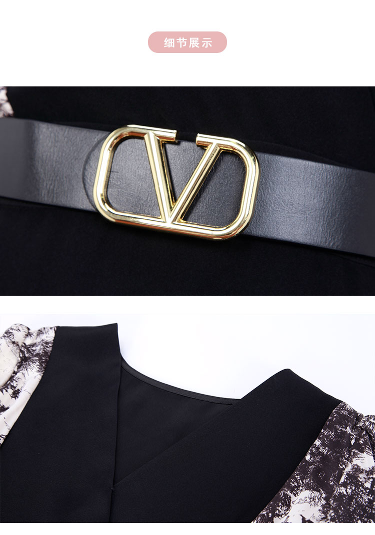 春夏OL通勤气质高级感撞色拼接花色连衣裙 498655