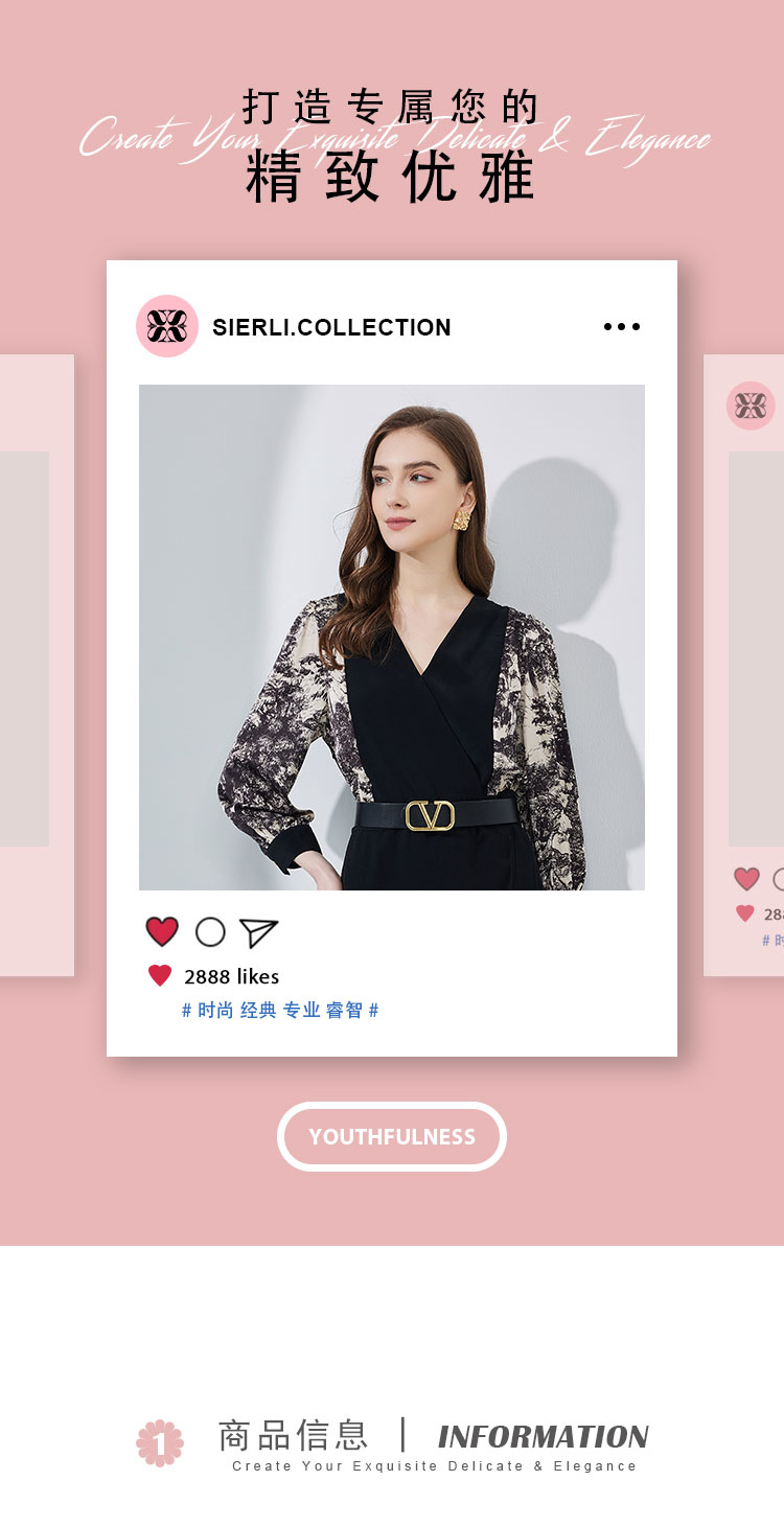 商品名称:春夏OL通勤气质高级感撞色拼接花色连衣裙 498655