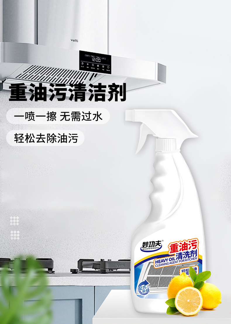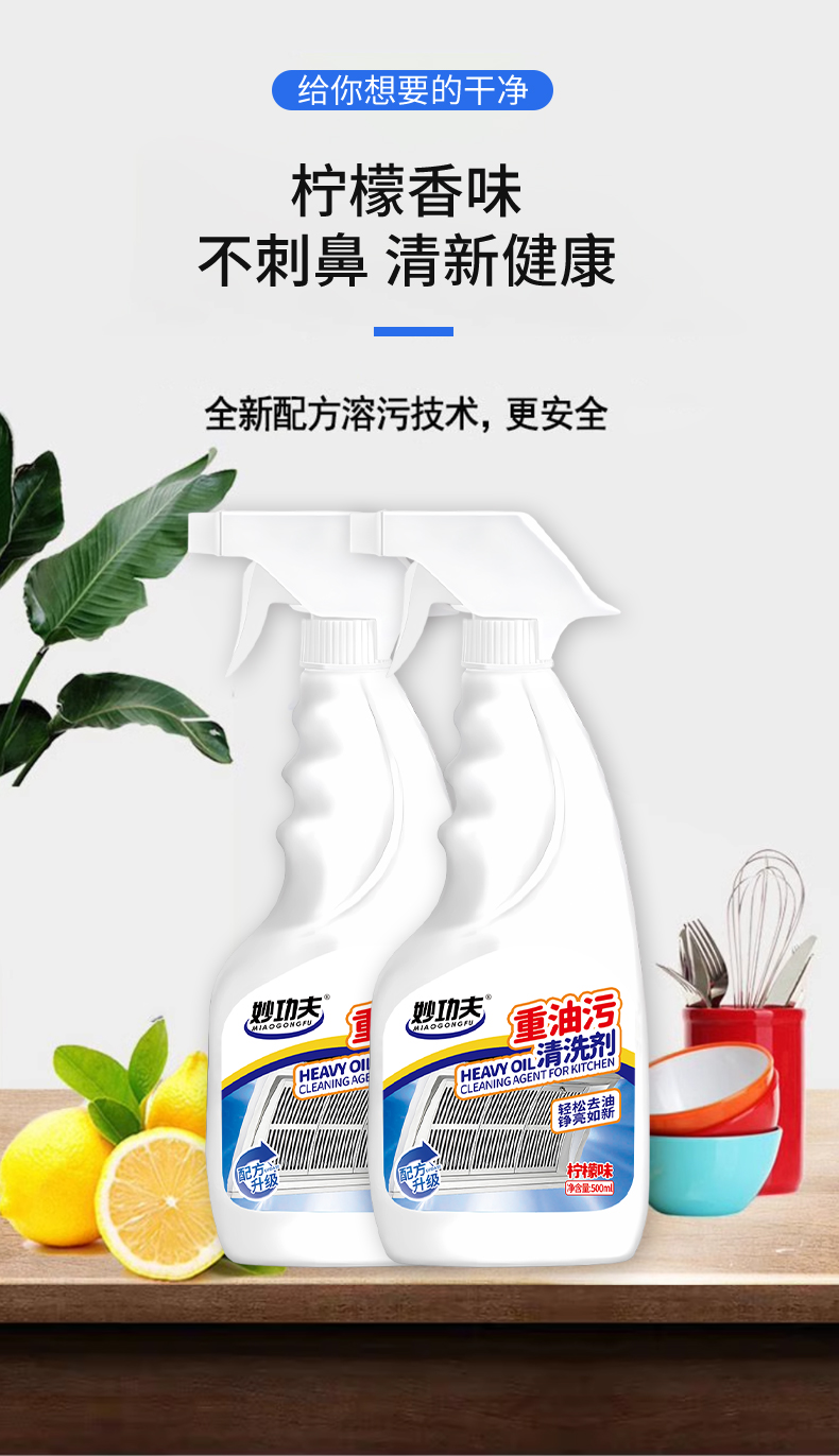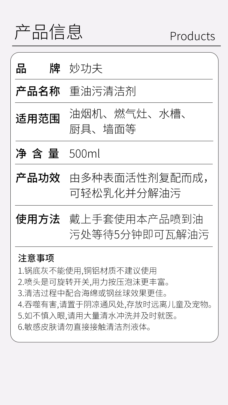 妙功夫家清组合(净白炫彩多效去污洗衣液2kg*4瓶+重油污清洗剂500ml*2瓶)