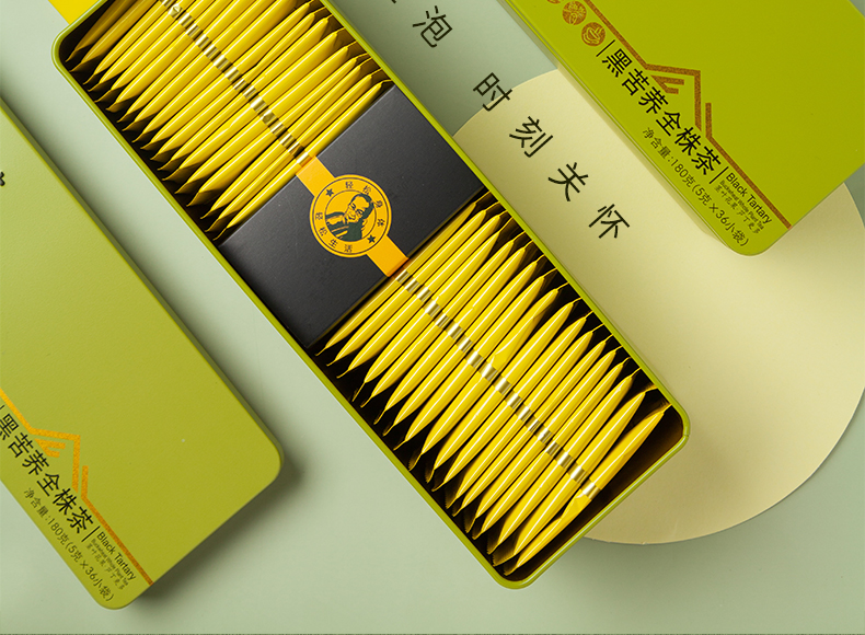 商品名称:三匠黑苦荞全株茶铁盒180g