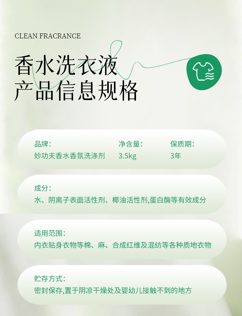 商品名称:妙功夫高档服装专用香水香氛洗涤剂3.5kg