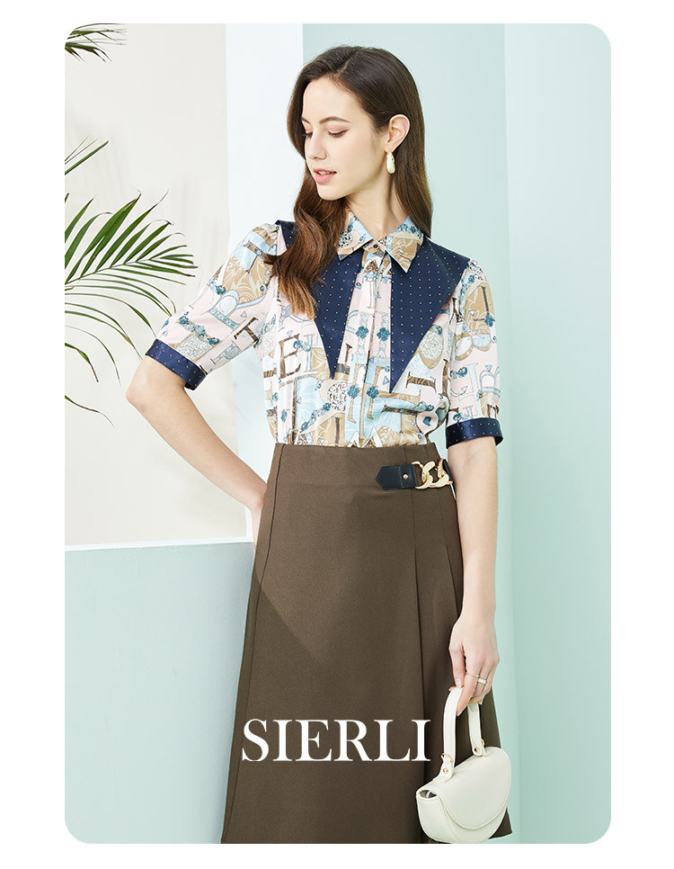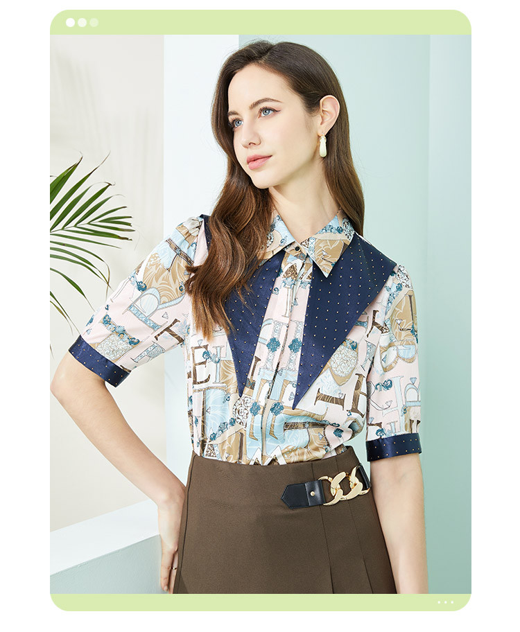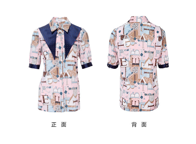 商品名称:秋季翻领款字母印花烫钻短袖衬衫 944671