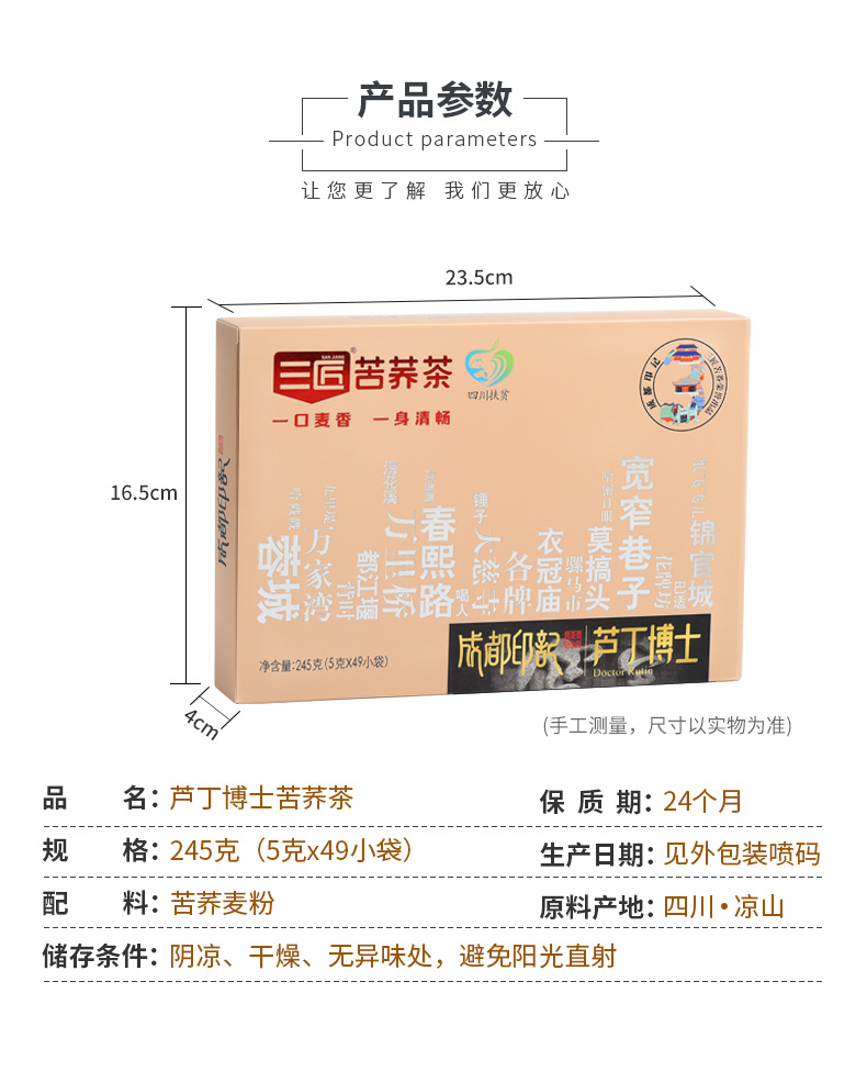 商品名称:三匠芦丁博士苦荞茶-成都印记款245g