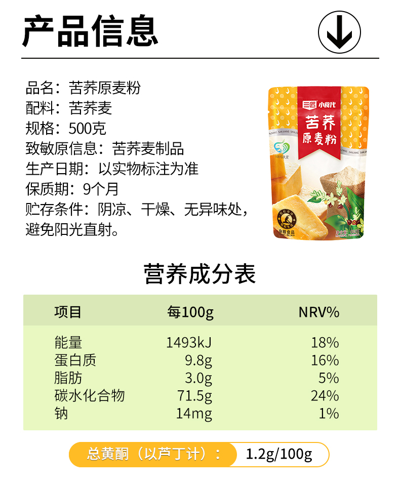 商品名称:三匠小时代苦荞原麦粉500g