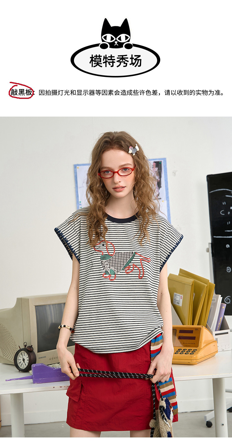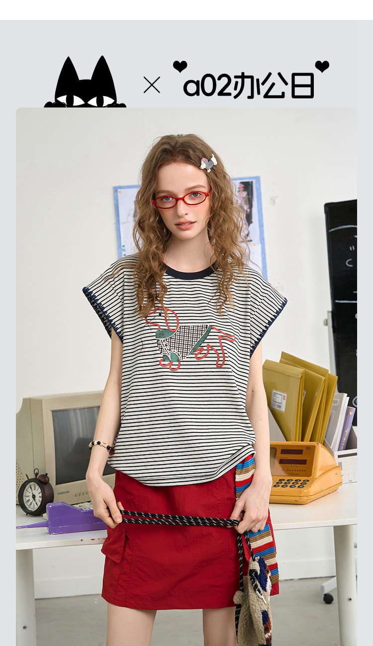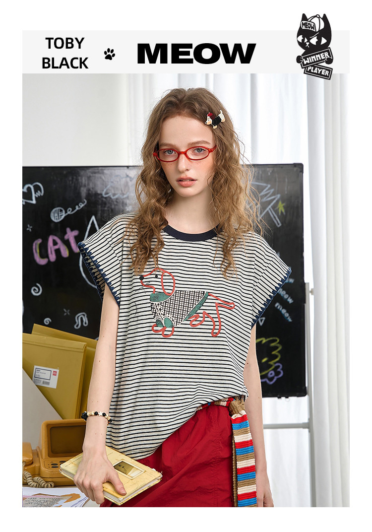 商品名称:撞色小狗印花坎肩设计感小众上衣2025夏季宽松百搭女式T恤 963549