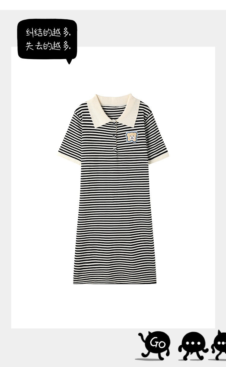 商品名称:宽松显瘦条纹减龄针织Polo裙2025夏季百搭休闲连衣裙 793757