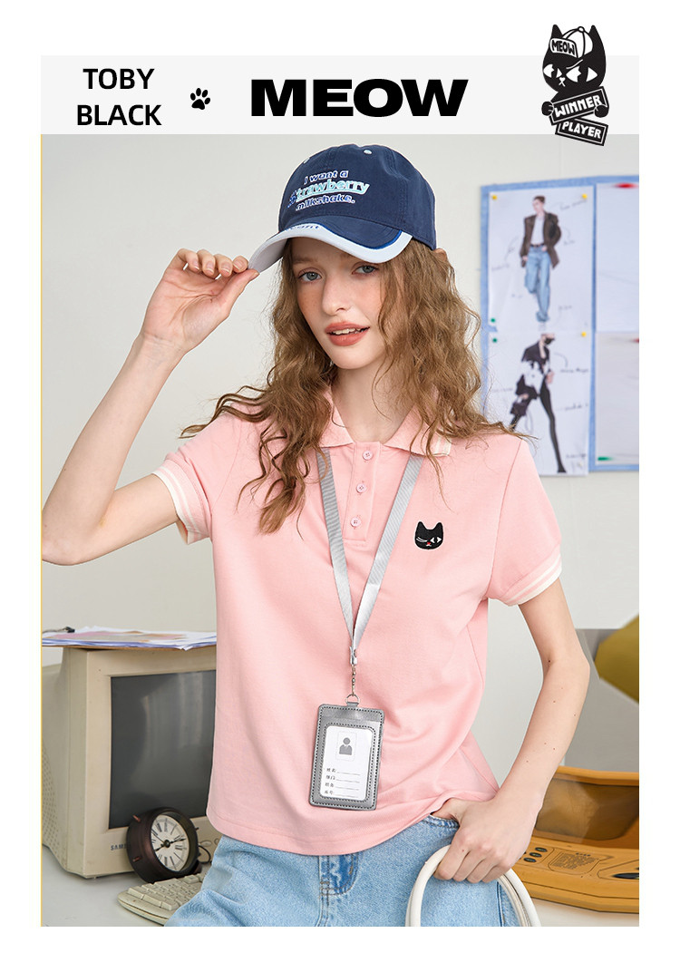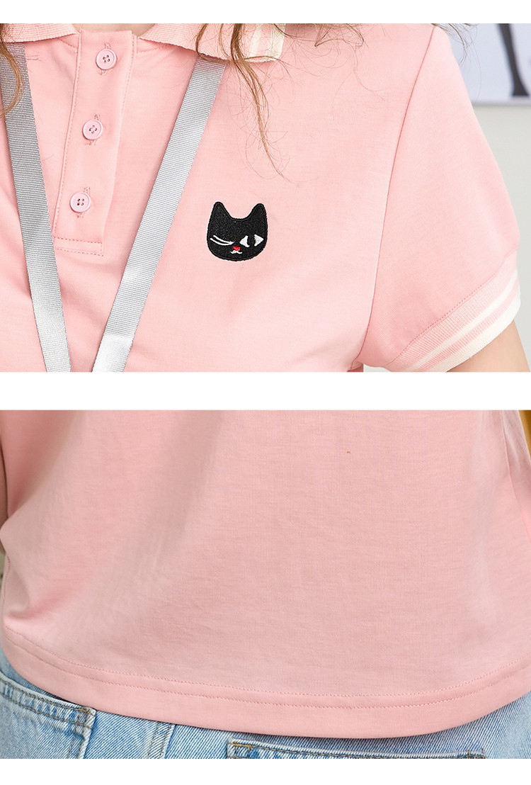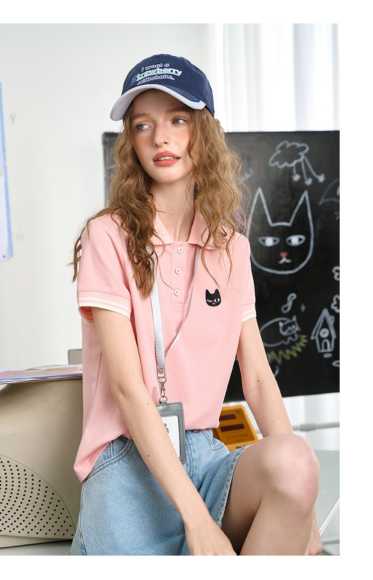 商品名称:简约纯色学院风翻领短袖上衣2025夏季休闲百搭女式Polo衫 916125