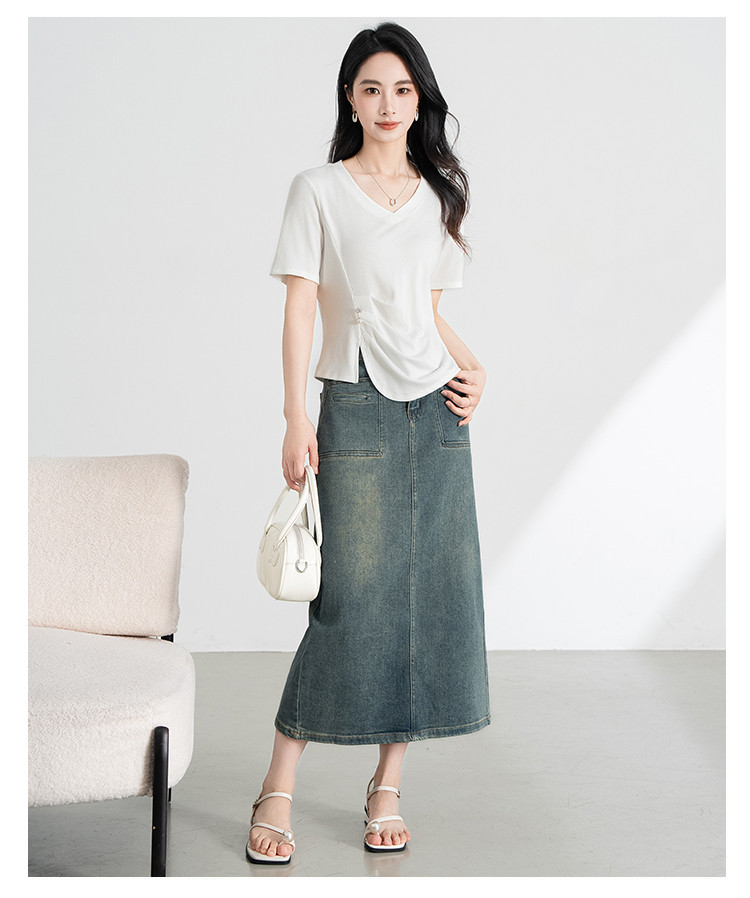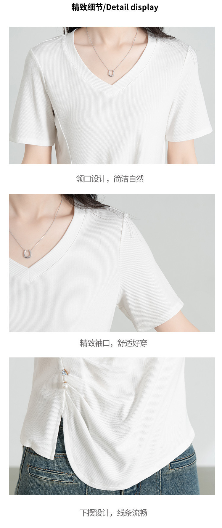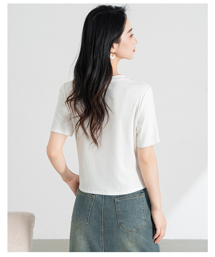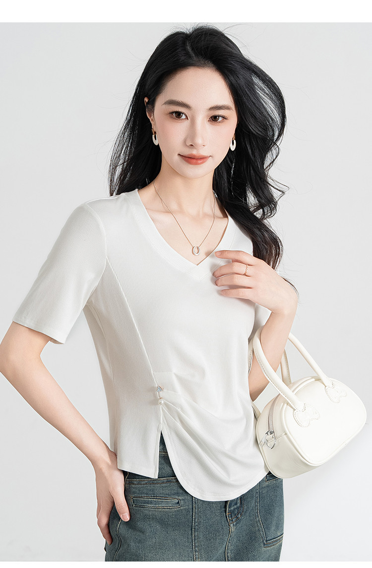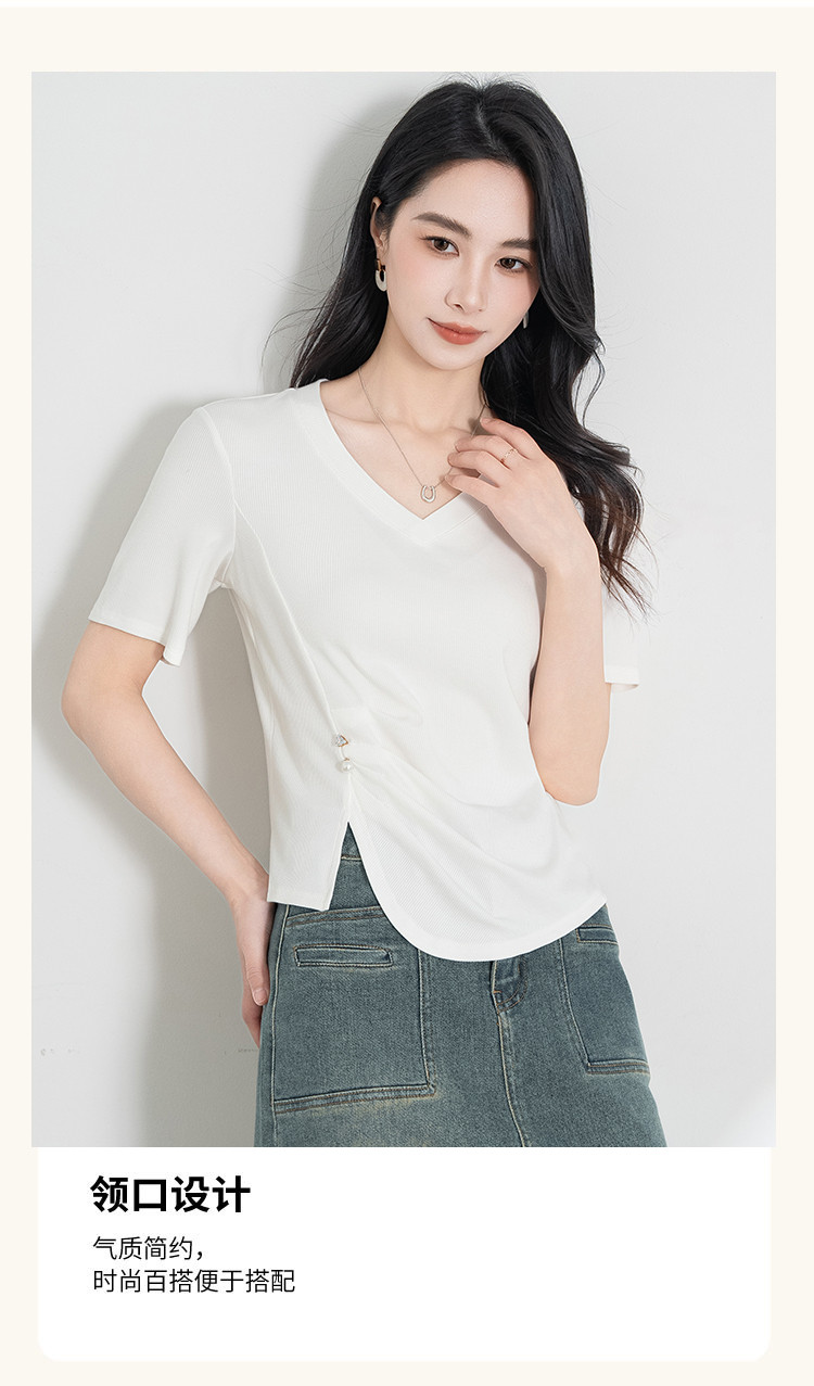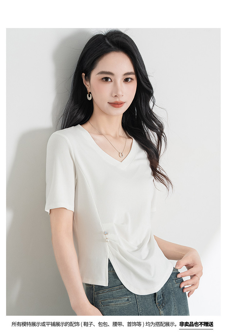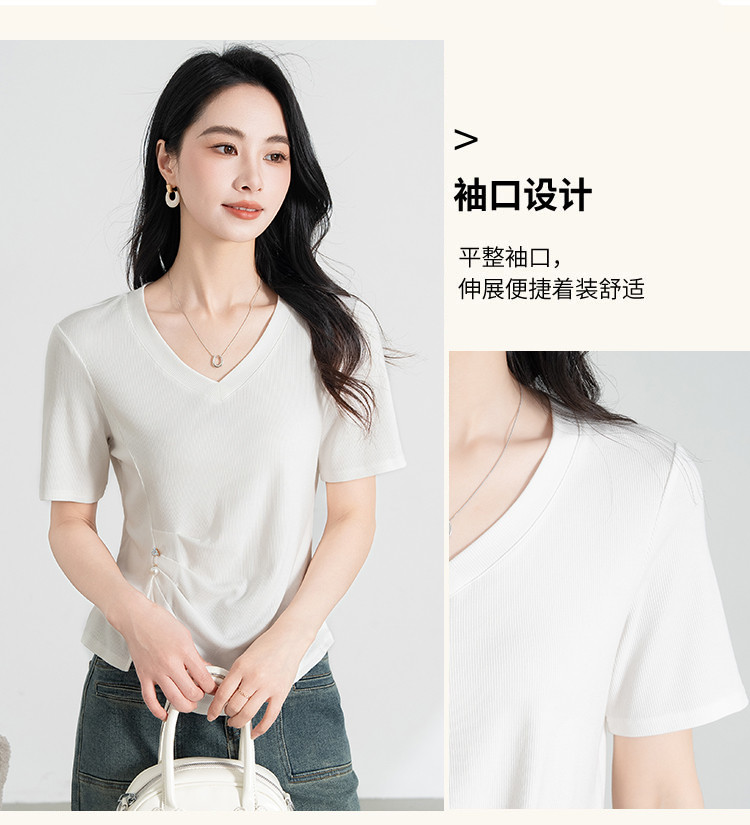 商品名称:【凉爽冰丝】冰丝针织短袖女薄款2025夏季腰间捏褶显瘦短袖t 005535