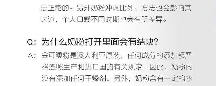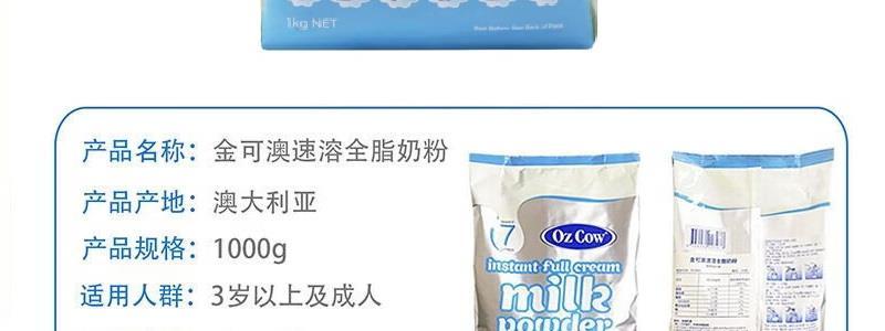 商品名称:澳大利亚 金可澳(ozcow)全脂澳洲牛奶粉 1000g