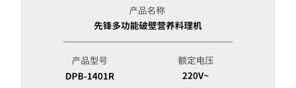商品名称:先锋 多功能破壁营养料理机 DPB-1401R