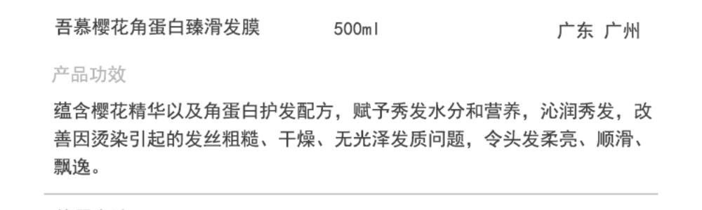 商品名称:吾慕 樱花角蛋白臻滑发膜 550ml/瓶