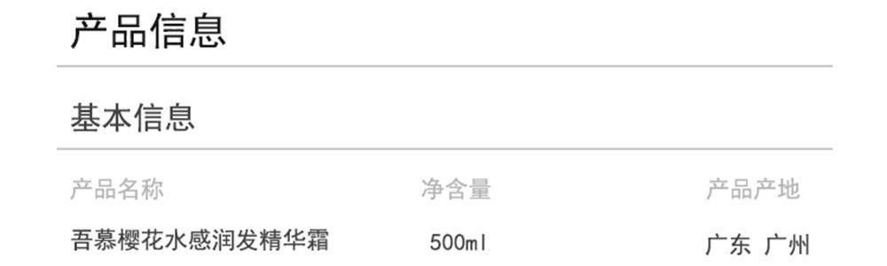 商品名称:吾慕 樱花水感润发精华霜 500ml/瓶