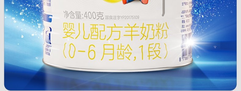 商品名称:荷兰 佳贝艾特(kabrita) 悦白婴儿配方羊奶粉1段 400g 有积分可溯源