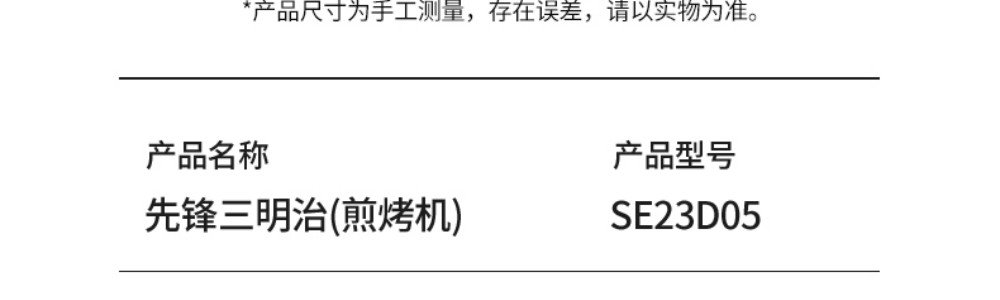 商品名称:先锋 三明治(煎烤机) SE23D05