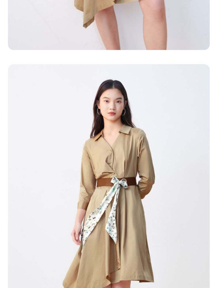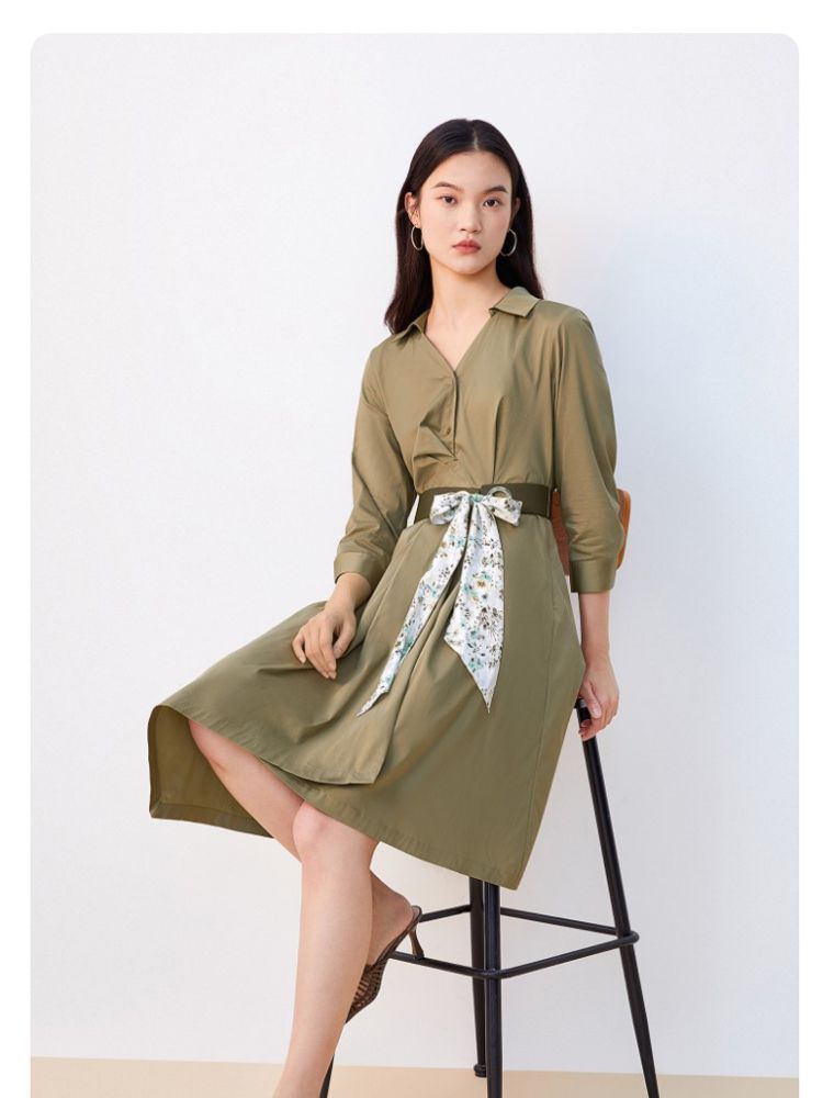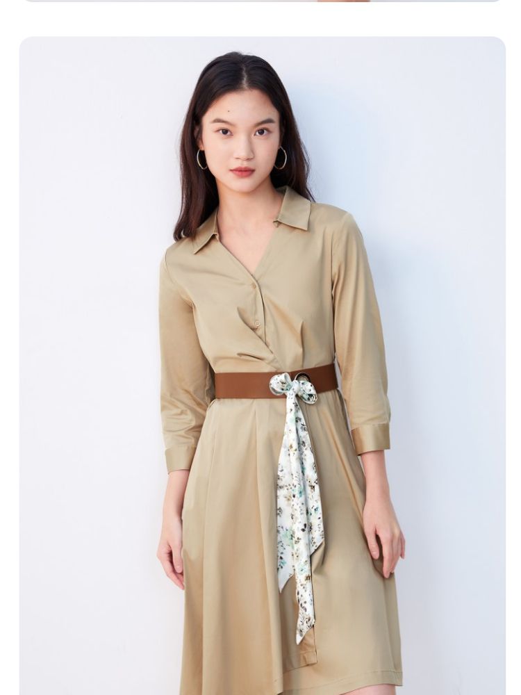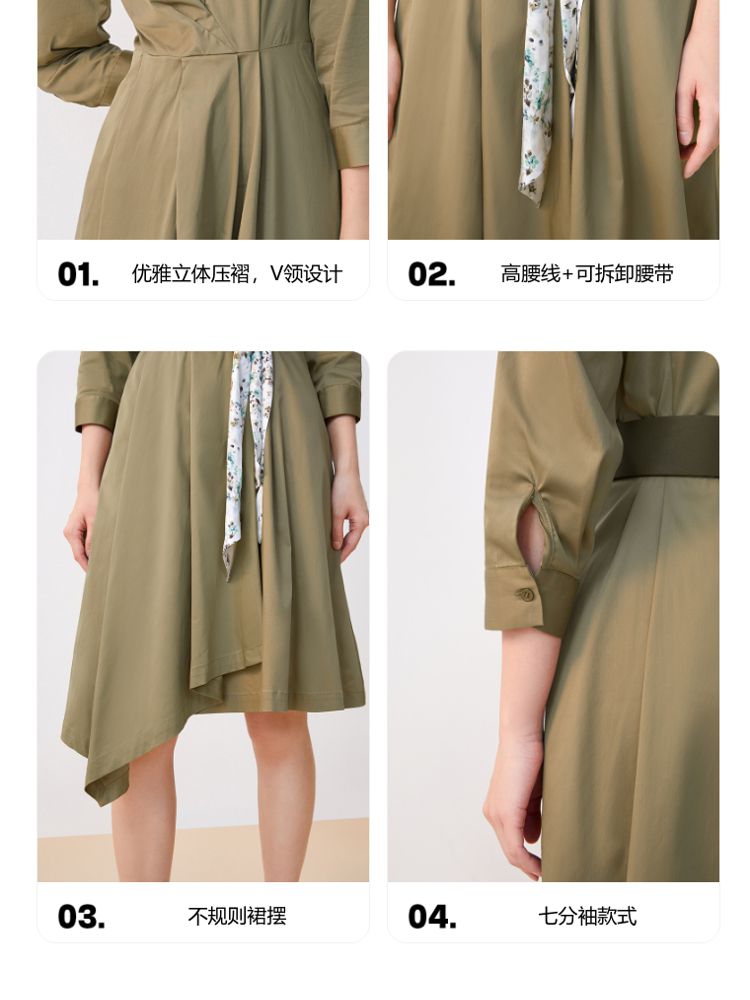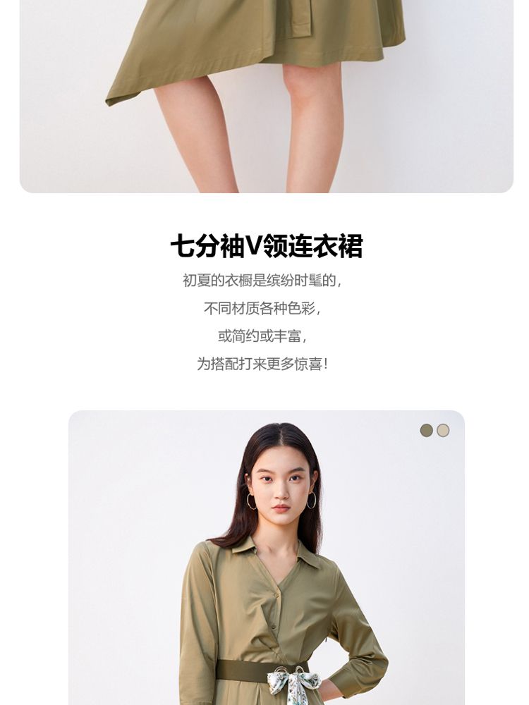 商品名称:【可拆腰带立体压褶】春夏专柜款七分袖V领连衣裙气质百搭时尚 567057