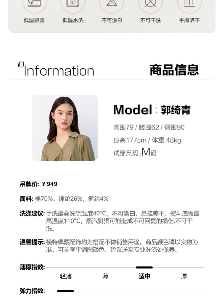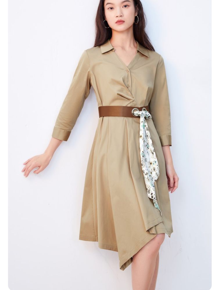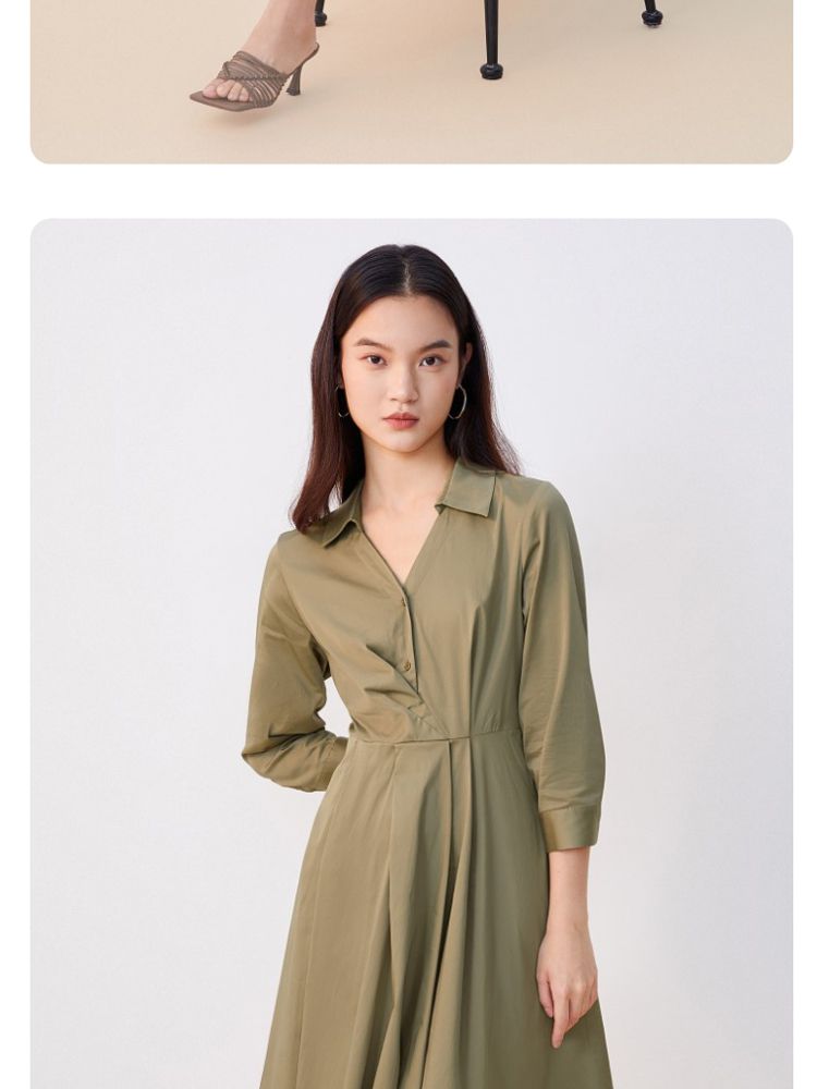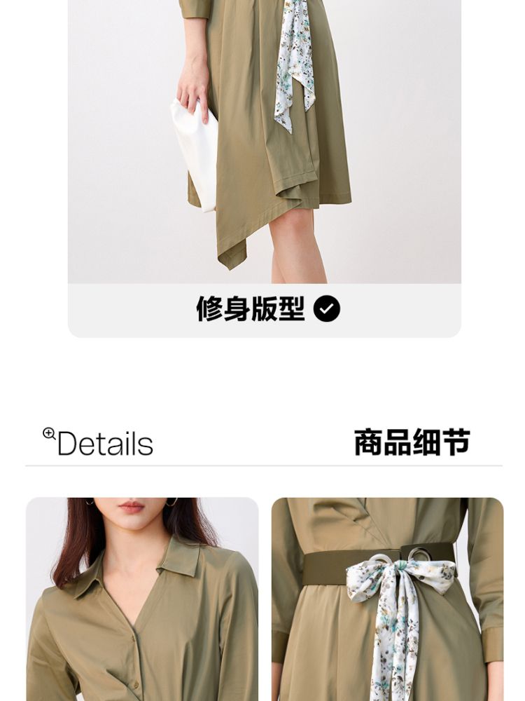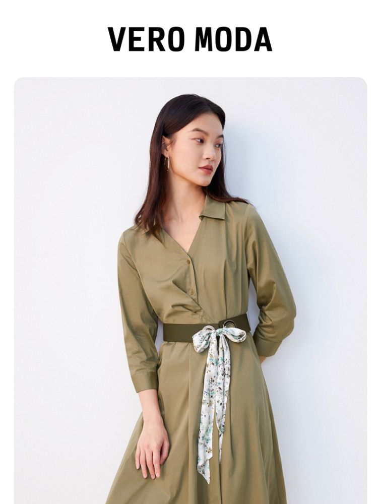 商品名称:【可拆腰带立体压褶】春夏专柜款七分袖V领连衣裙气质百搭时尚 567057