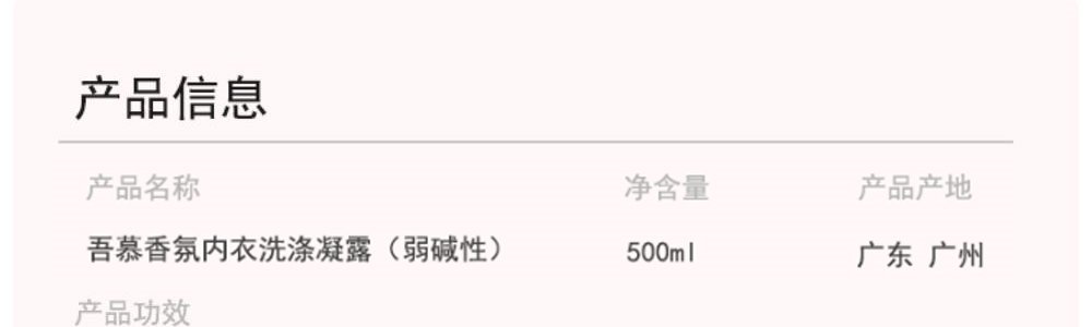 商品名称:吾慕 香氛内衣洗涤凝露(弱碱性)500ml/瓶 粉色