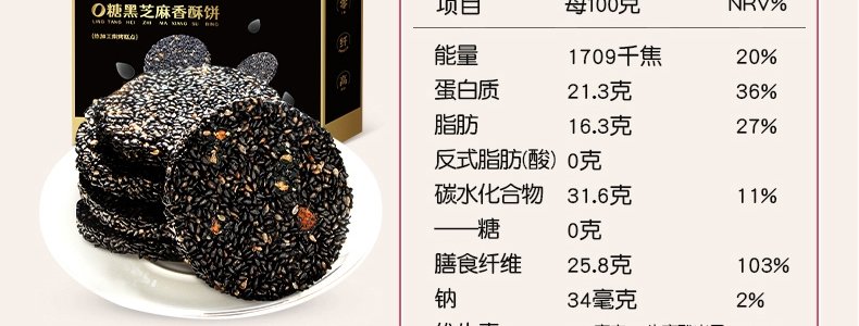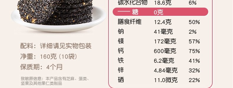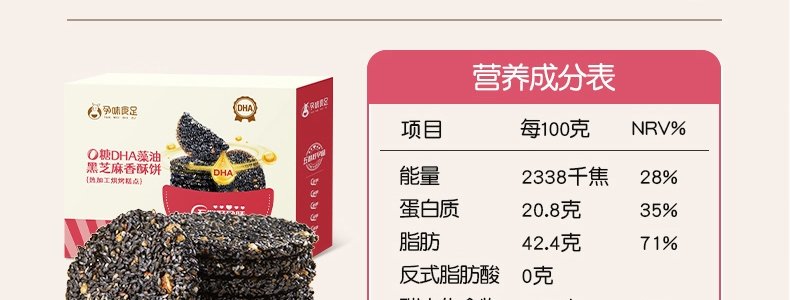 商品名称:孕味食足 0糖款DHA黑芝麻香酥饼 160g*2盒