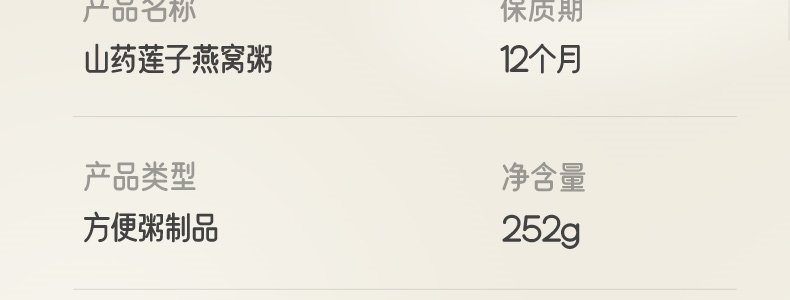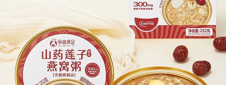 商品名称:孕味食足 山药莲子燕窝粥 252g*7碗