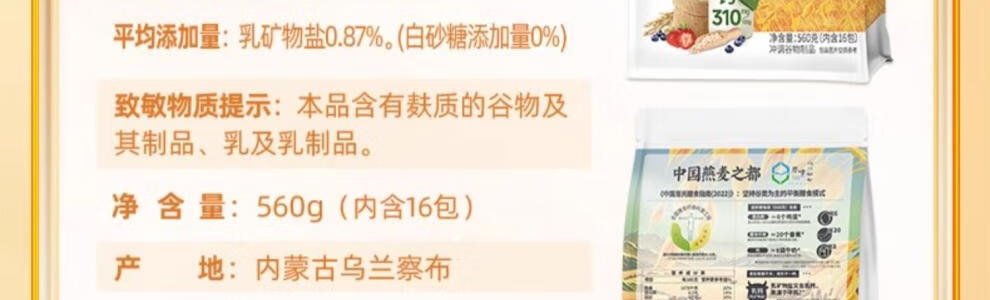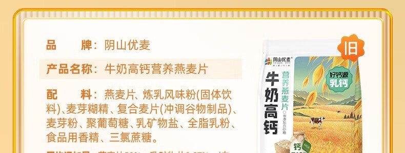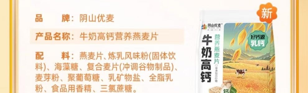 商品名称:阴山优麦 牛奶高钙营养燕麦片 560g