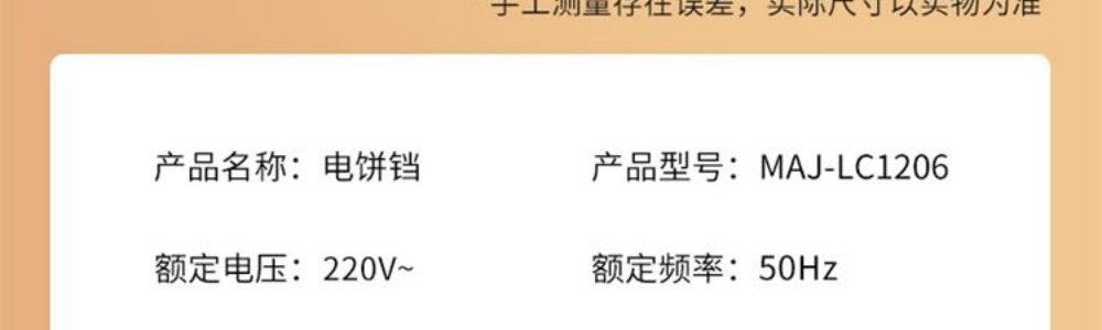 商品名称:美菱(MELING)电饼铛 MAJ-LC1206