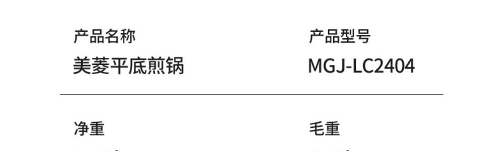 商品名称:美菱(MELING)平底煎锅 MGJ-LC2404