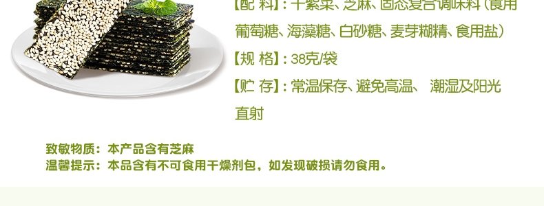 商品名称:孕味食足 夹心海苔 芝麻味 38g*2袋