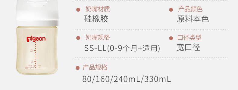 商品名称:日本 贝亲(Pegion)自然实感III宽口径PPSU奶瓶 SS号奶嘴 160mL AA261