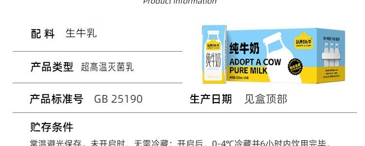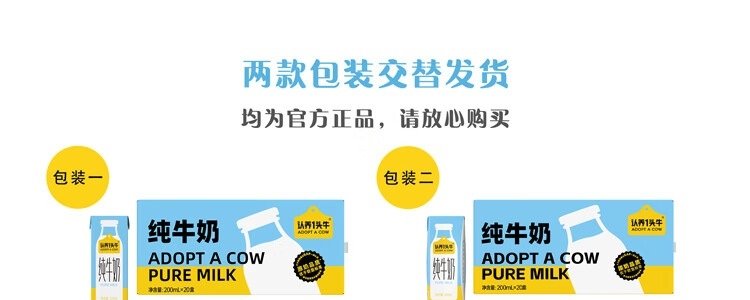商品名称:认养一头牛 纯牛奶 200ml*20盒/提 包装随机发