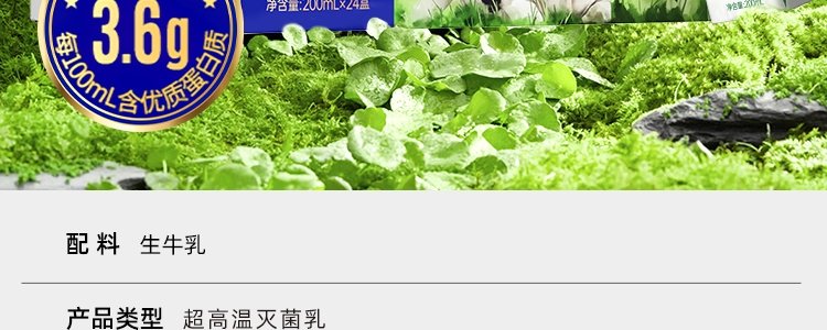 商品名称:认养一头牛 原生高钙3.6g蛋白纯牛奶 200ml*24盒/提