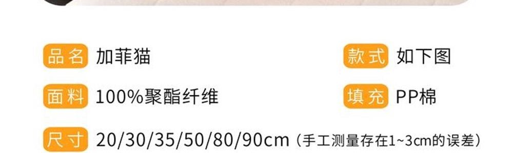 商品名称:加菲猫 水貂绒款站姿 30CM