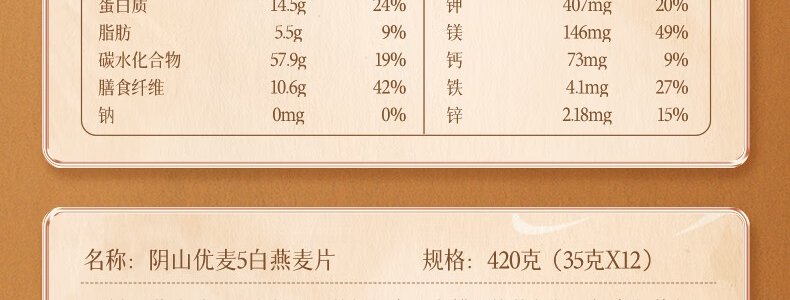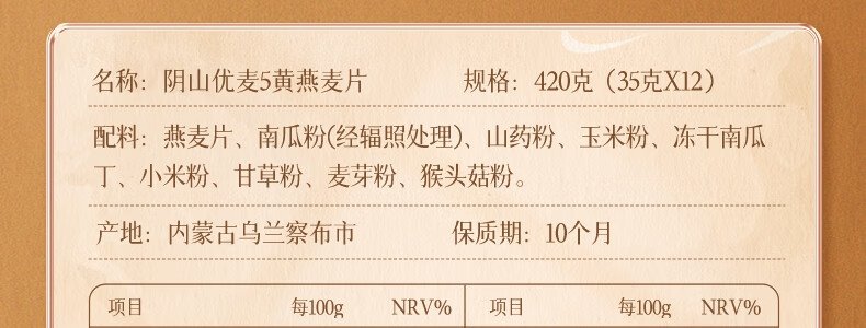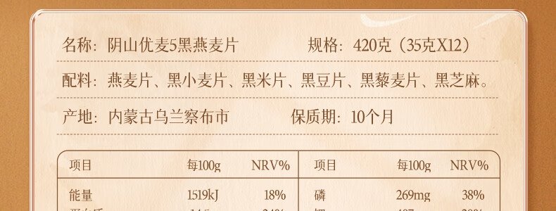 商品名称:阴山优麦 5青燕麦片 420g(35g*12包)