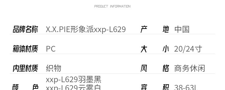 商品名称:X.X.PIE 形象派流动条纹拉杆箱XXP-L629 云雾白 20英寸