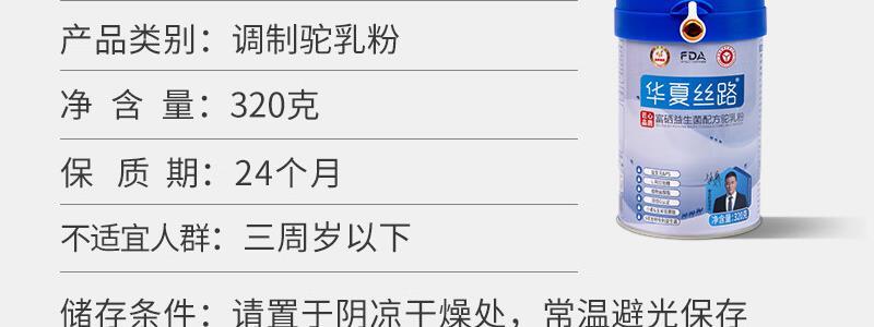 商品名称:华夏丝路 富硒高钙益生菌驼乳粉 320g 新老版本随机