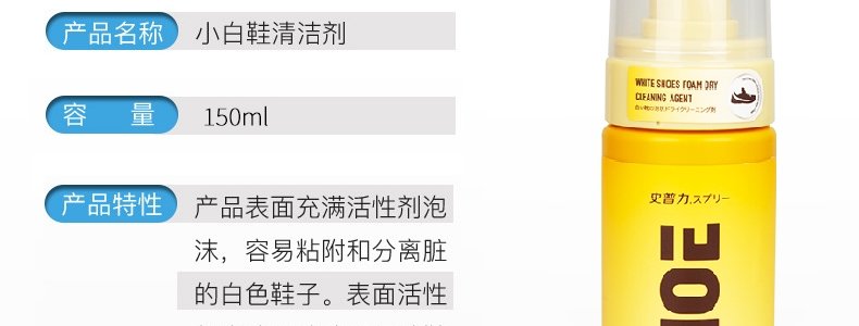 商品名称:史普力 小白鞋泡沫干洗剂150ml*3瓶+海绵擦*1个