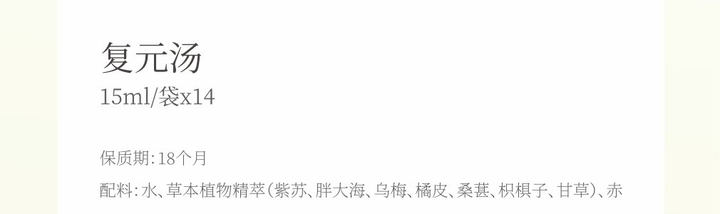 商品名称:姿里堂 月子水第二阶复元汤 15ml*14袋