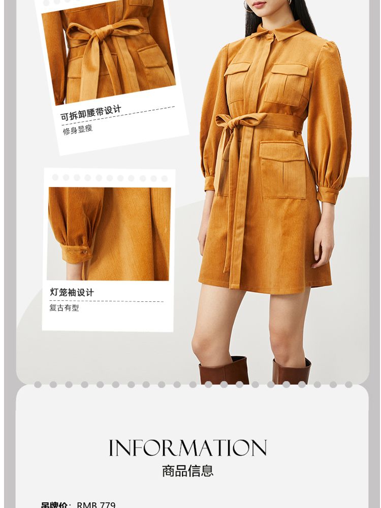 商品名称:【春夏美拉德】【专柜同款】收腰A字裙灯笼袖连衣裙气质百搭时尚 744401