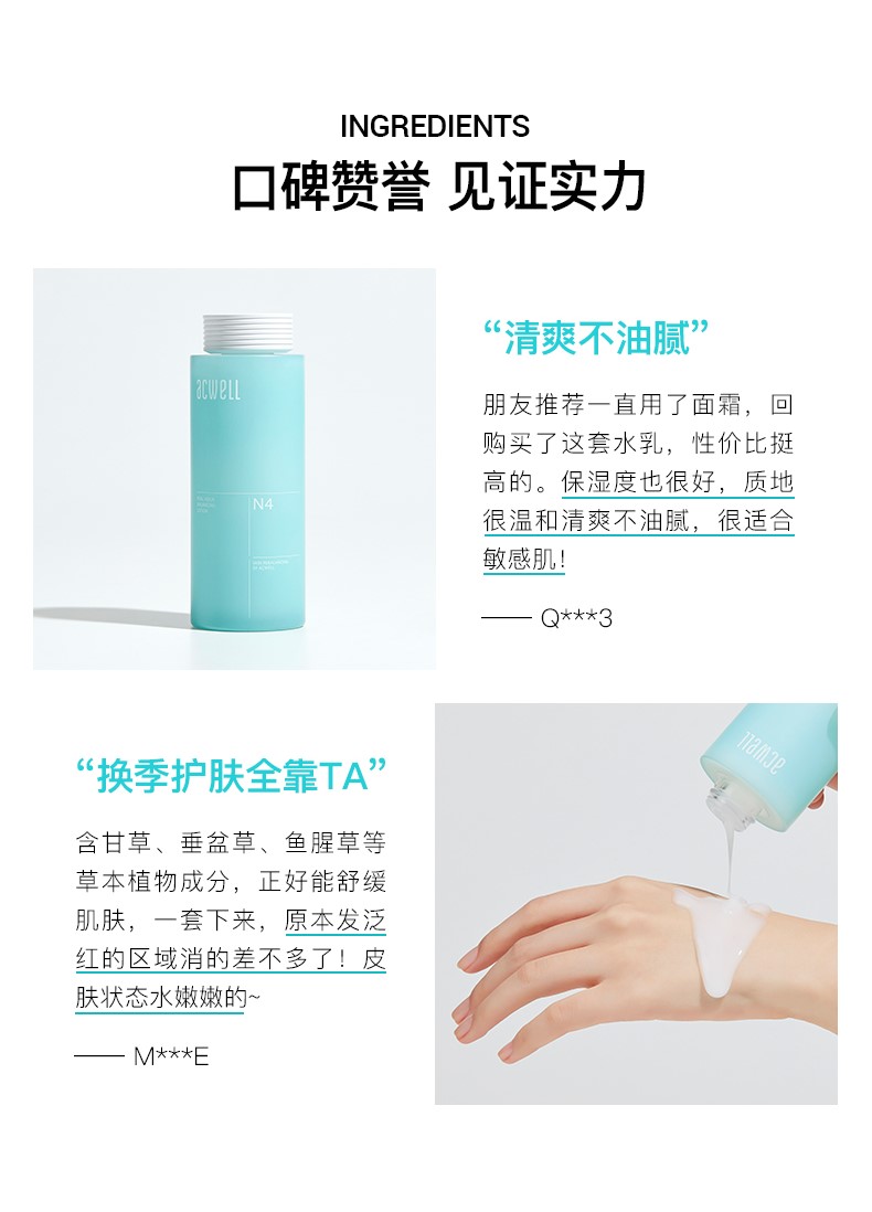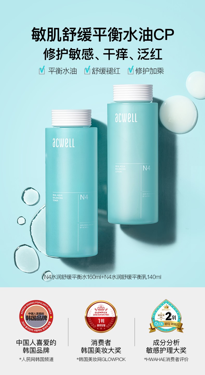 商品名称:acwell艾珂薇 N4平衡调理水乳套装 舒缓修护补水保湿控油敏感肌适用