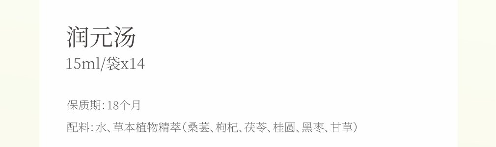 商品名称:姿里堂 月子水第四阶润元汤 15ml*14袋