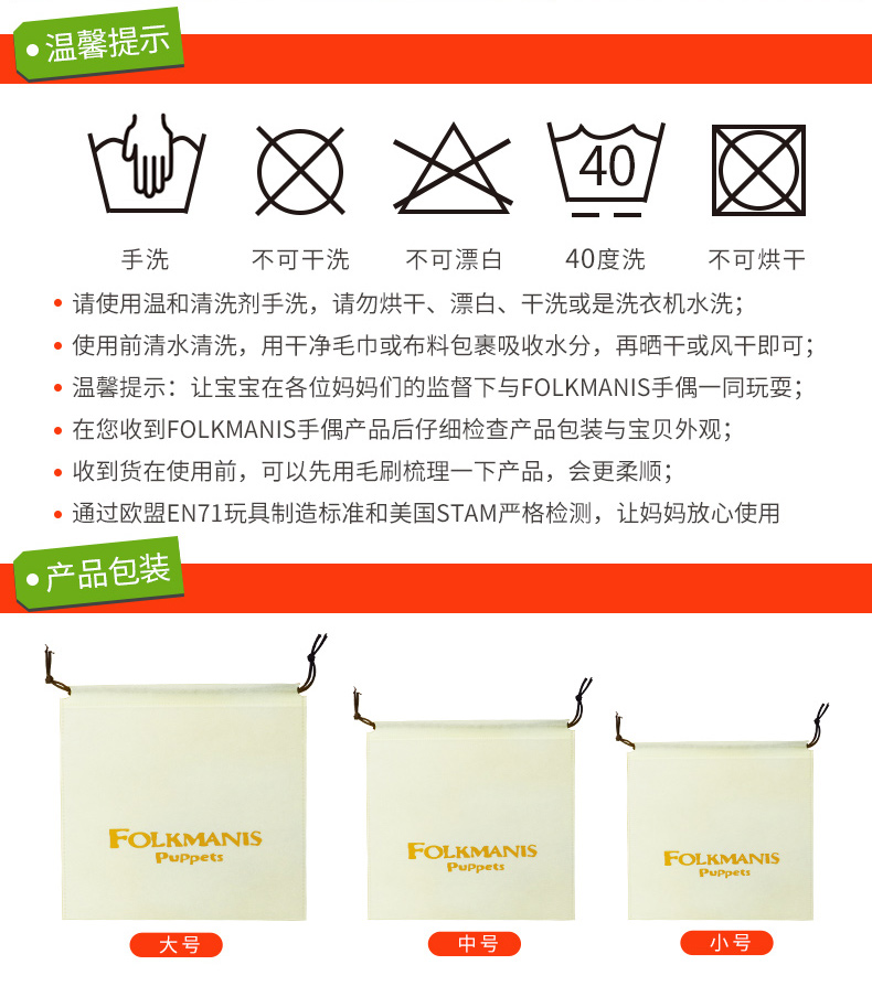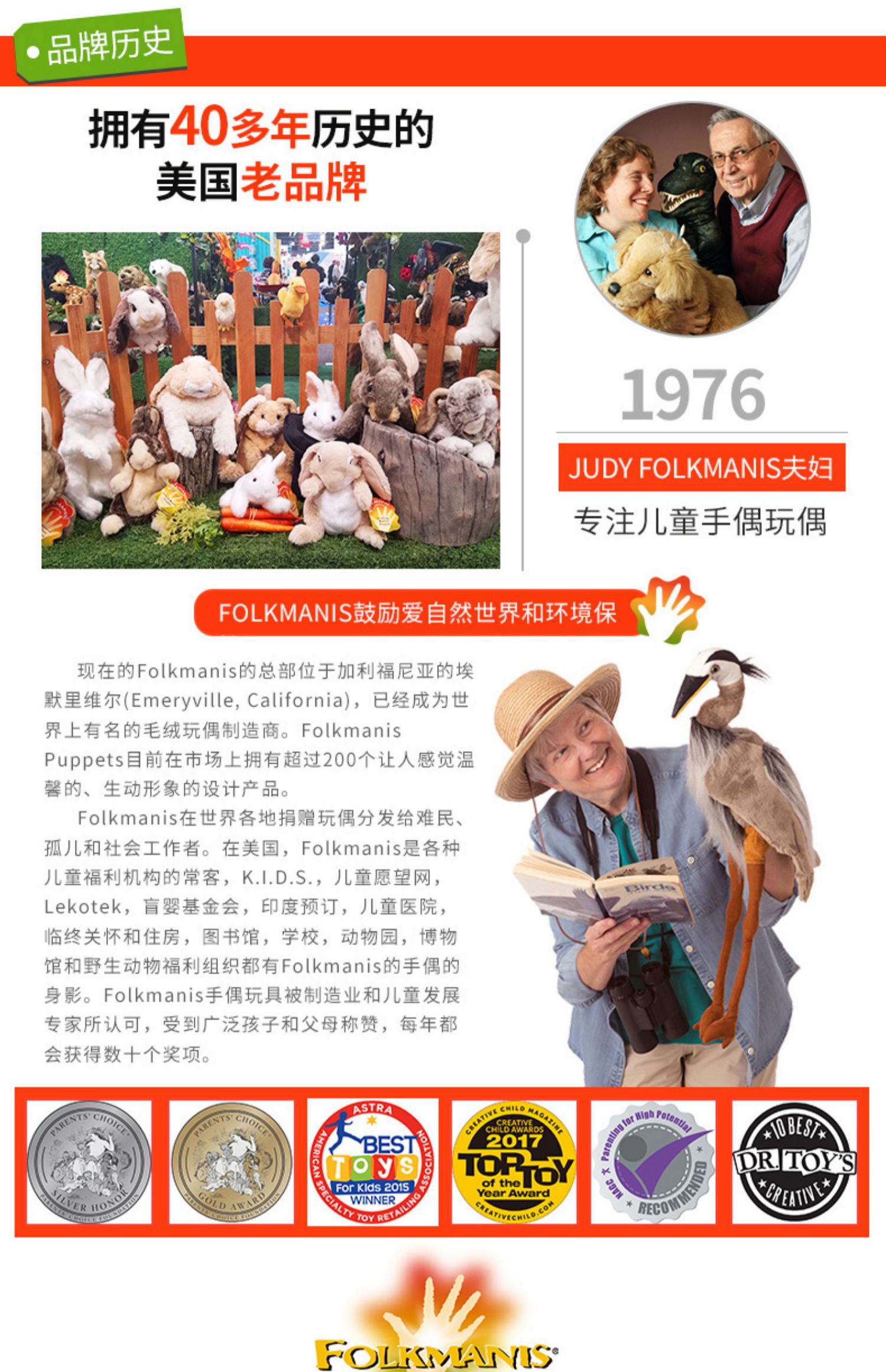 福克曼尼斯/FOLKMANIS 仿真互动教育手偶小灰狼手套偶