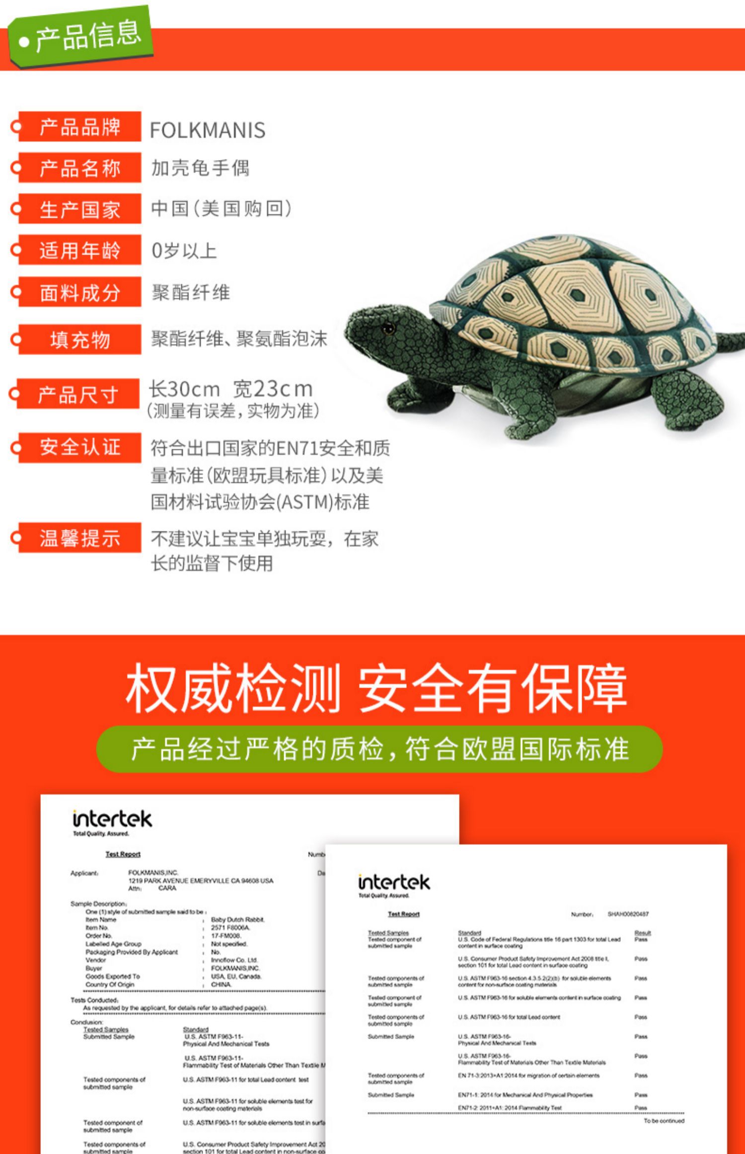 商品名称:福克曼尼斯 仿真互动教育手偶甲壳龟手偶