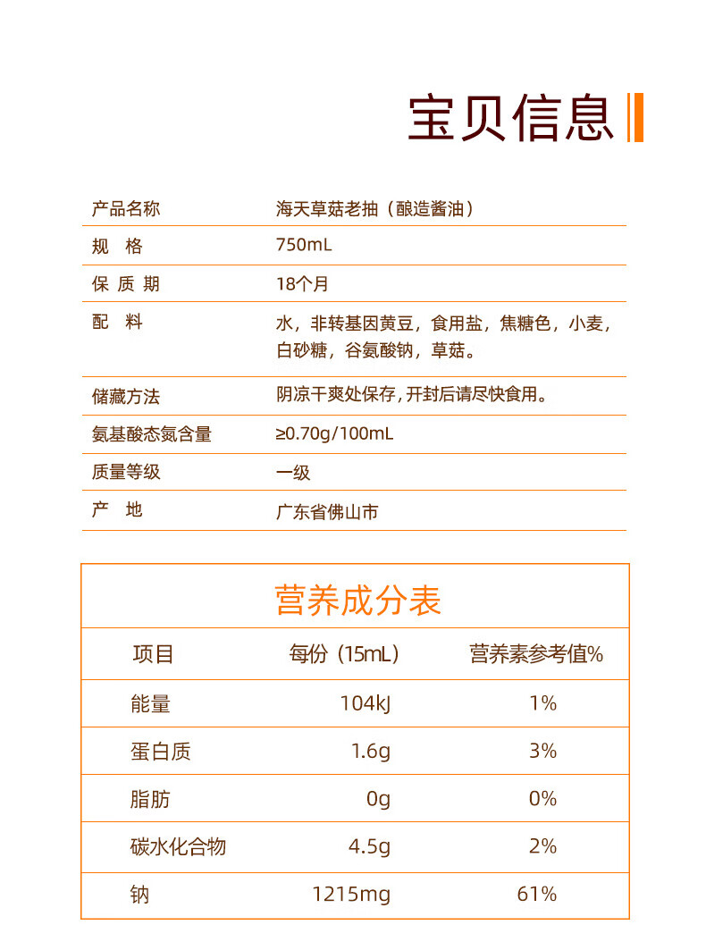 商品名称:海天草菇老抽