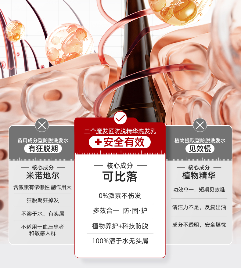 三个魔发匠圆瓶防脱精华洗发乳400ml